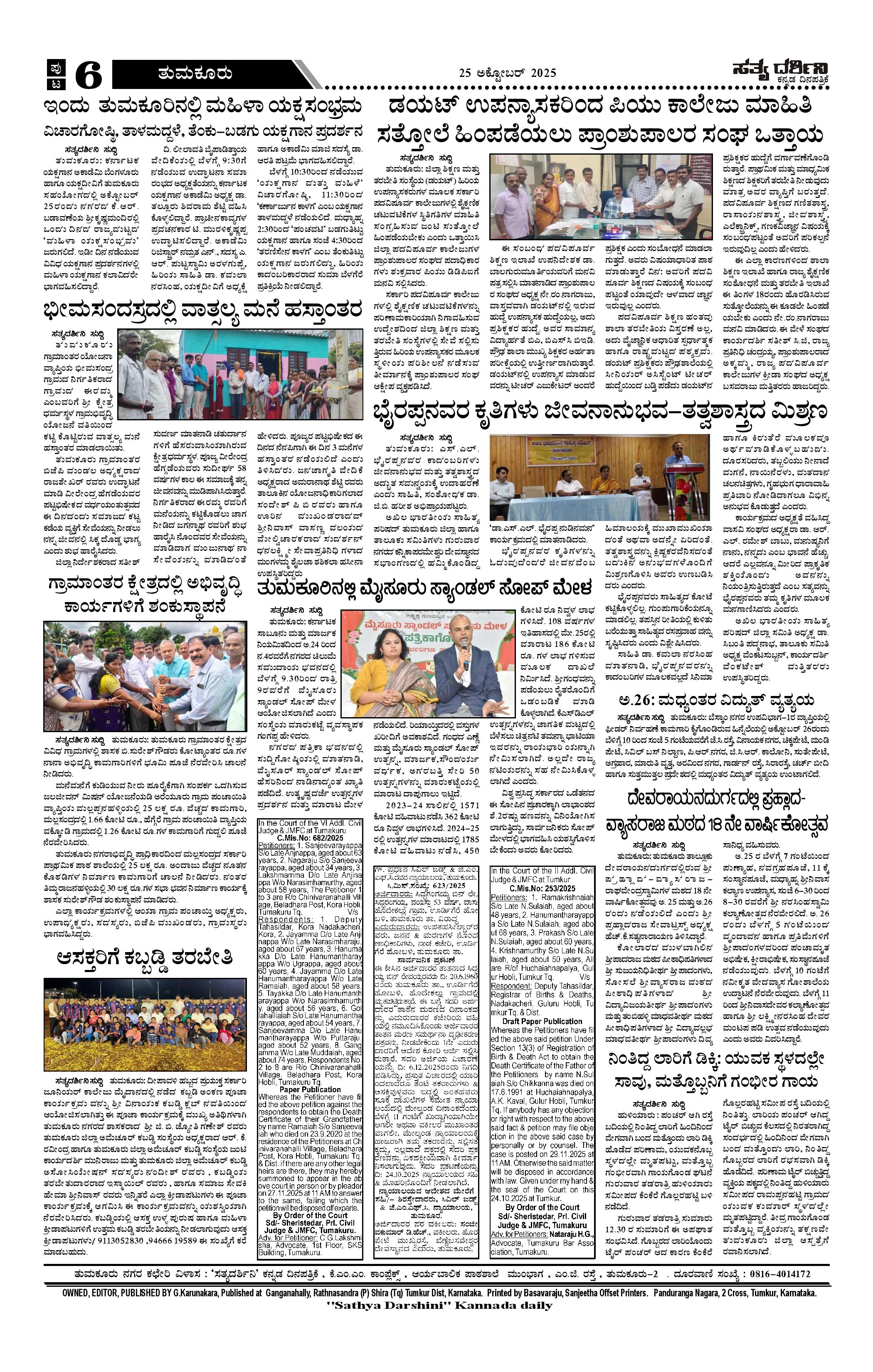 SATHYADARSHINI Page: 6 October 25, 2025 SATHYADARSHINI << First << 6 >> Last >> Page 1Page 2Page 3Page 4Page 5Page 6 × SATHYADARSHINI 1a2a3a4a5a6a << First << 6 >> Last >> 1a2a3a4a5a6a 6a